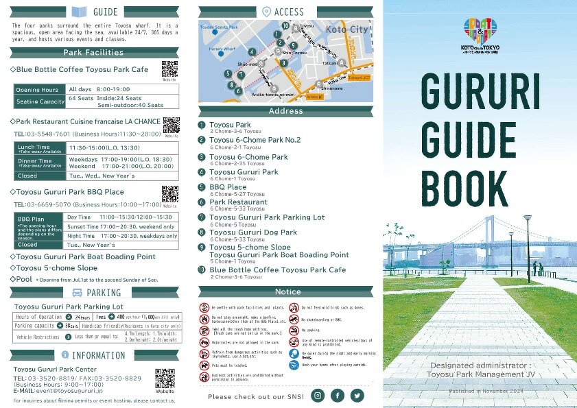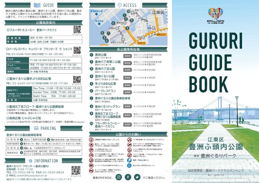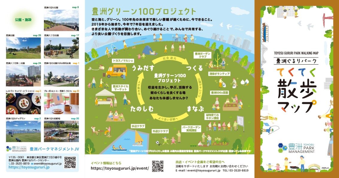 豊洲ぐるりパークの4つの公園と東電掘の豊洲五丁目スロープの指定管理事業が始まりました。公園を民間のアイデアにより活性化します。
