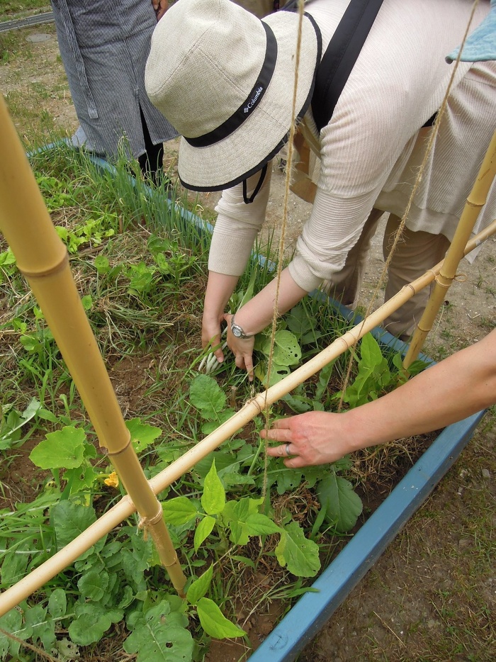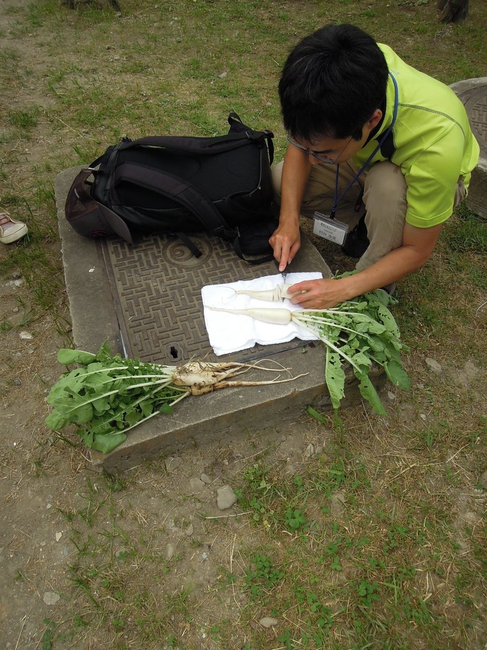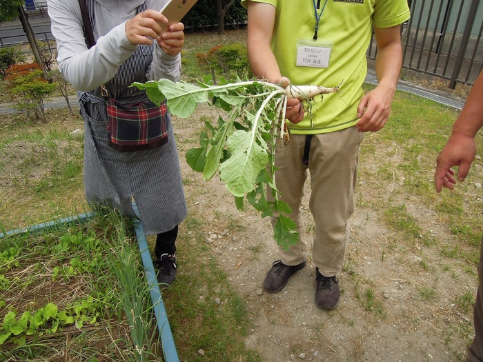 花が咲いてしまいそうなので、大根を収穫し、その場で味見をしました。