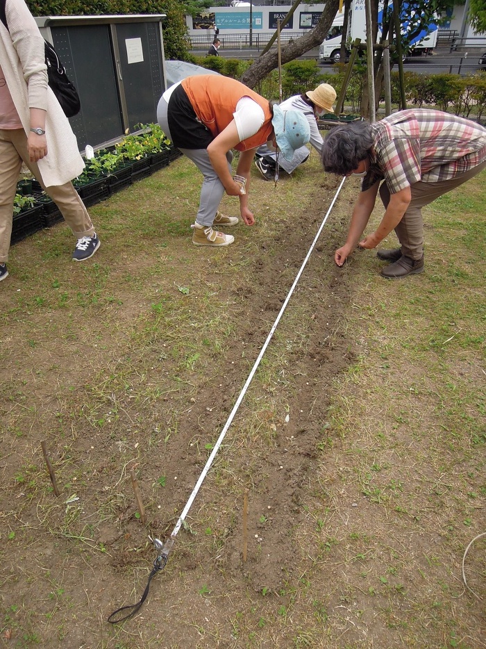 ・スジ状に土を削って、種を播き、削った土をかぶせる