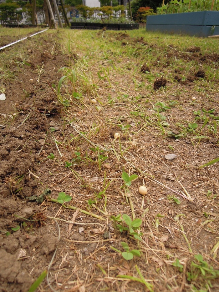畑の脇の手が加えられていない土に種を播いてみるという実験です。