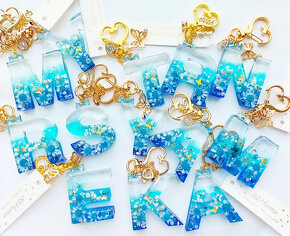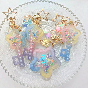 レジンを使ったキラキラアクセサリーを販売。ワークショップではレジン液を使った簡単なキーホルダーが作れます。