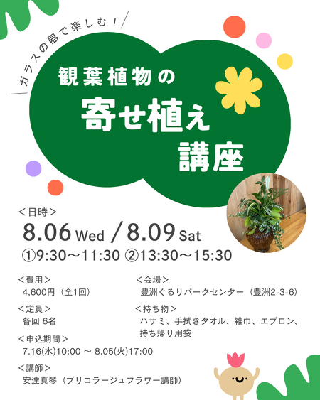 ガラスの器で楽しむ「観葉植物の寄せ植え講座」2025