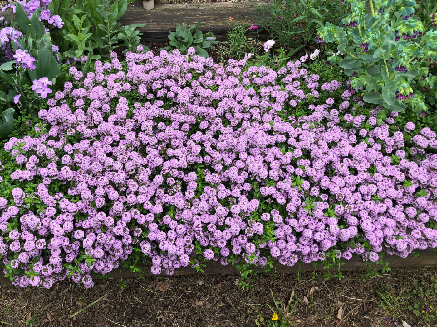 這い性のタイムで、花をエディブルフラワーとして利用可能。丸っこい花で濃いピンクが可愛らしい。