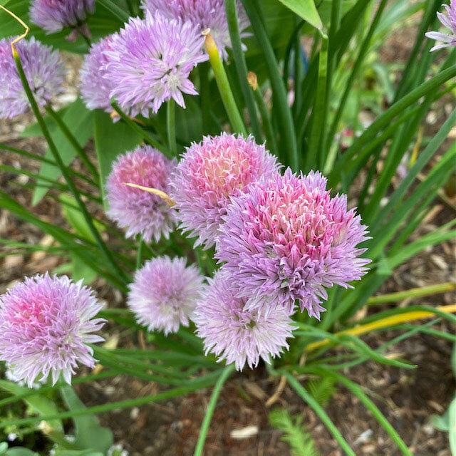 薬味ネギのような細い葉だけでなく、ピンクの花も料理の飾りに利用でき彩りに重宝。花はネギの風味。