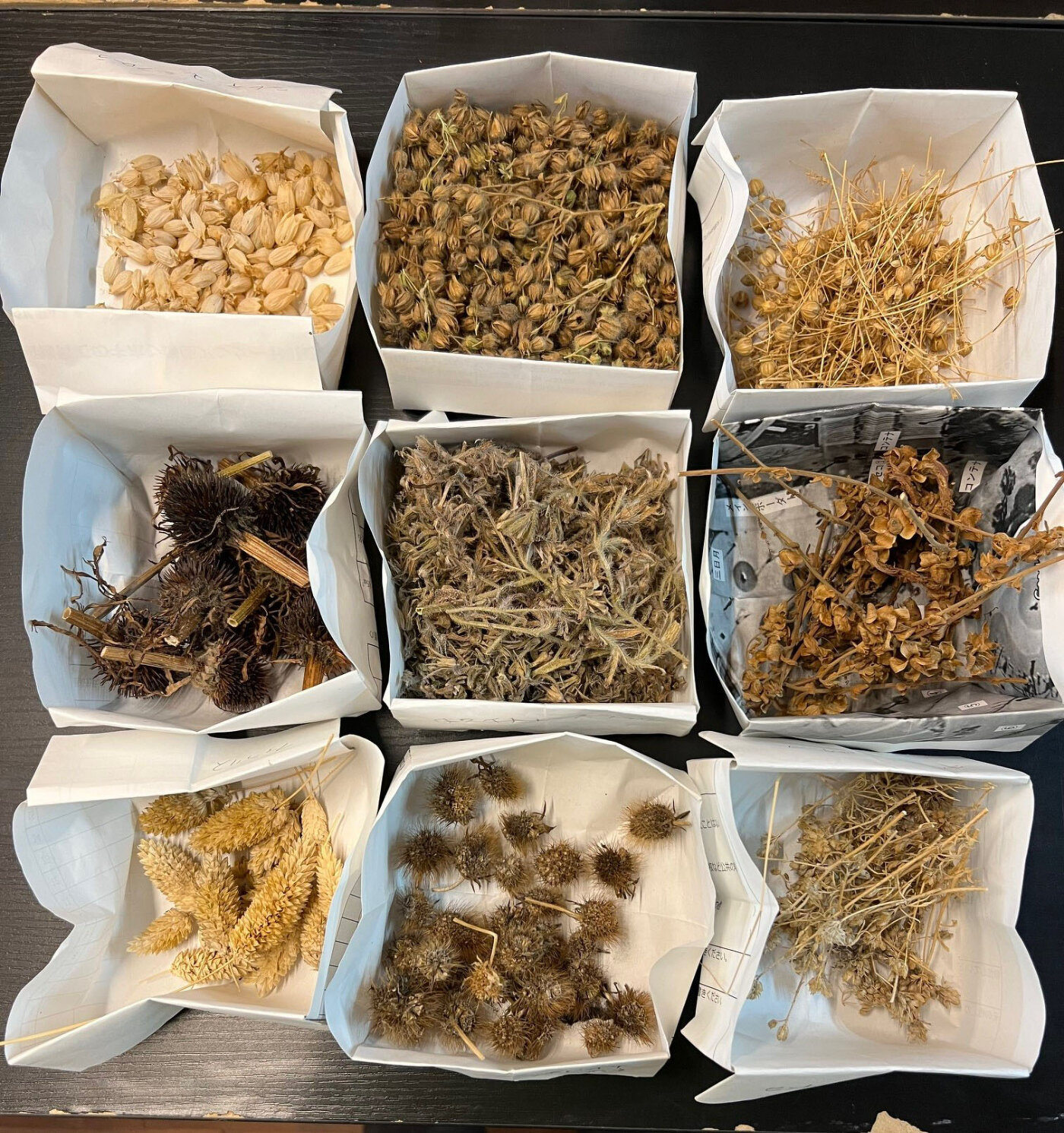 種まきは好きですか?豊洲ガーデンクラブでは毎年秋と春の2回種まきをしています。花の種はアサガオのような大きな種から1mm以下のほこりのような小さなものまで様々。種屋さんで購入した種は発芽率も良く、きれいに整理されていますが、豊洲では咲いた後のシードヘッドを収穫し、種を取り出してまくことも。不要な部分を取り除いて種だけにする作業は結構手間がかかりますが、真冬や真夏の室内作業としておしゃべりしながら片付けます。