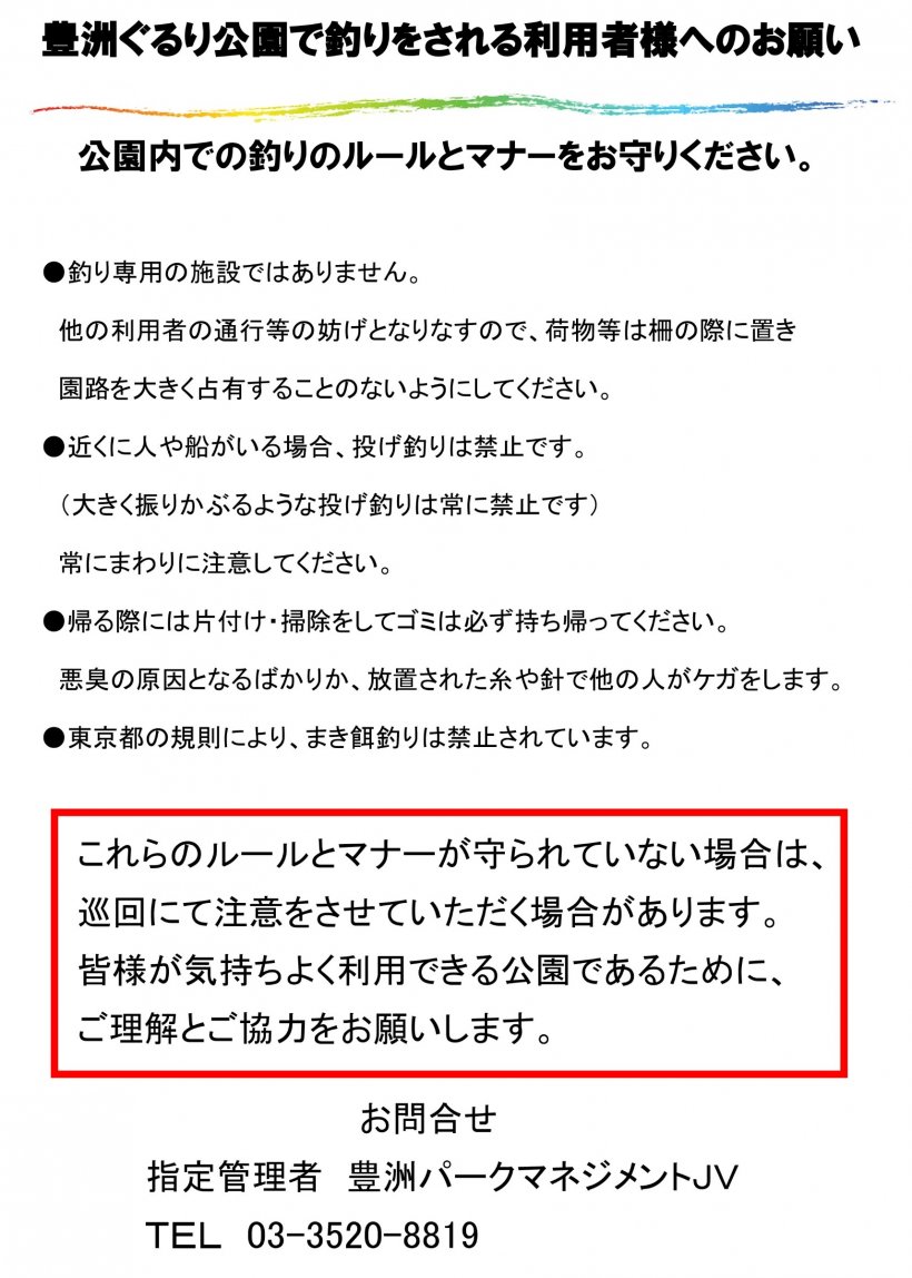 豊洲ぐるり公園で釣りをされる利用者様へのお願い